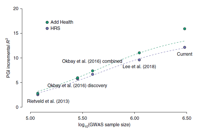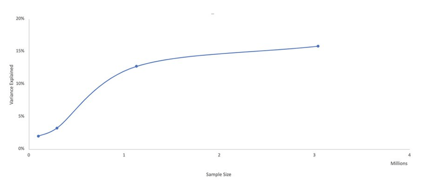 “We are now over 3 million participants. A 3x increase in sample size produced a 25% increase in between-family R2. Remember when we were told that bigger samples would inevitably lead to scientifically or practically actionable results? Are we still waiting for that? . . . “